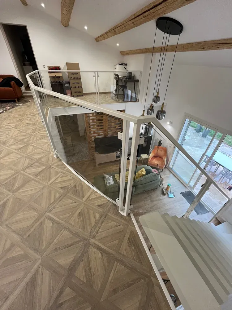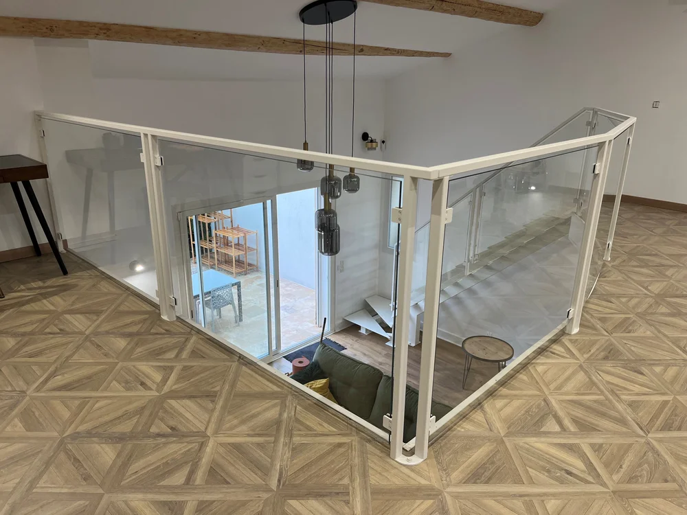 Chez EDC13, nous sommes fiers de vous proposer ce garde-corps d'exception, avec sa structures en acier et ses verres feuilletés, maintenu par des pinces à verre inox, thermolaqué blanc texturé, offrant un rendu visuel exceptionnel .La sécurité étant au cœur de nos préoccupations, nos garde-corps sont conçus pour garantir une protection optimale tout en s'intégrant harmonieusement à votre environnement. Grâce à l'utilisation de matériaux de haute qualité comme l'acier et le verre feuilleté, nous assurons une robustesse et une durabilité incomparables. De plus, le design moderne et épuré de nos créations apporte une touche esthétique indéniable à vos espaces.