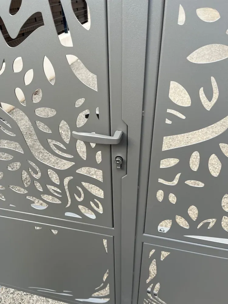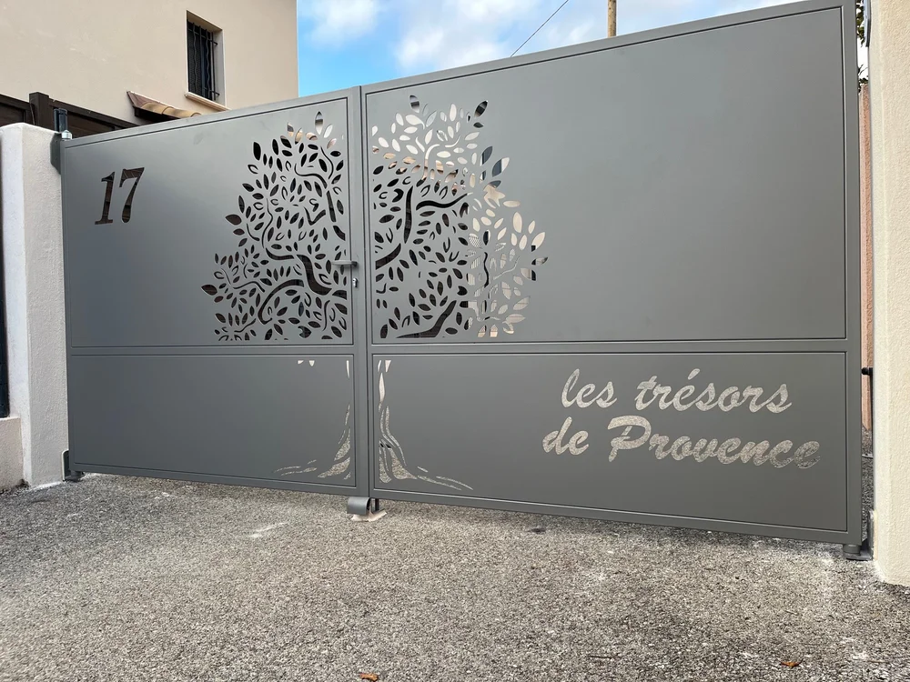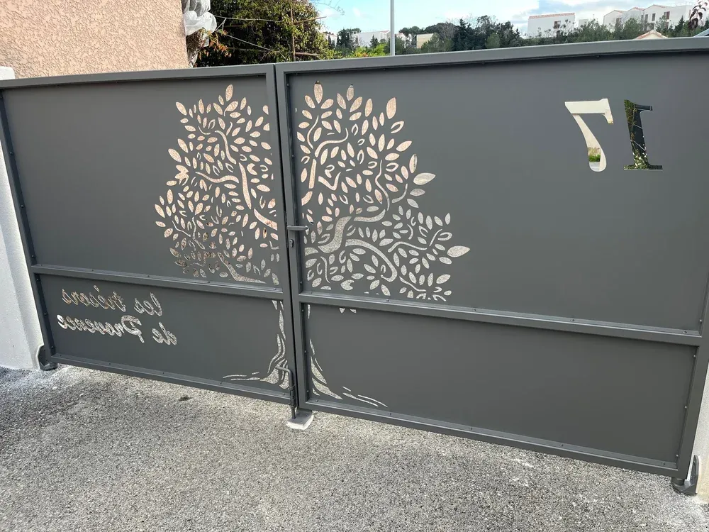 Ce projet consistait en l'installation d'un portail pour copropriété, conçu avec une structure en tube et des tôles découpées au laser. Le motif personnalisé, choisi en collaboration avec les résidents, a été soigneusement intégré pour répondre à leurs attentes esthétiques. Le portail a été thermolaqué, garantissant non seulement une finition élégante mais aussi une qualité et longévité exceptionnelles.